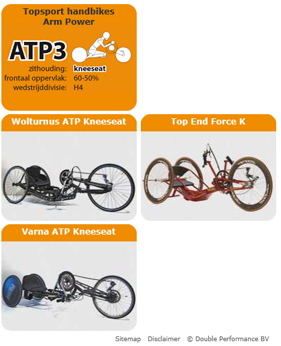 De handbike die gebruikt wordt voor de topsport heeft een zitting met een kniesteun. Door gebruik te maken van een kniesteun is het mogelijk om meer naar voren te leunen en dus minder luchtweerstand te hebben.